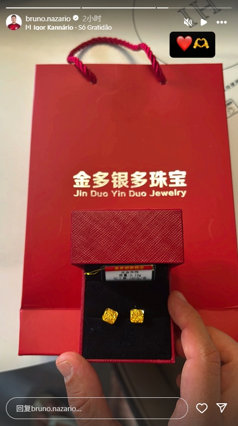 04月26日讯 昨日是河南外援纳萨里奥与妻子结婚12周年纪念日,纳萨里奥给妻子买了一对足金耳饰。